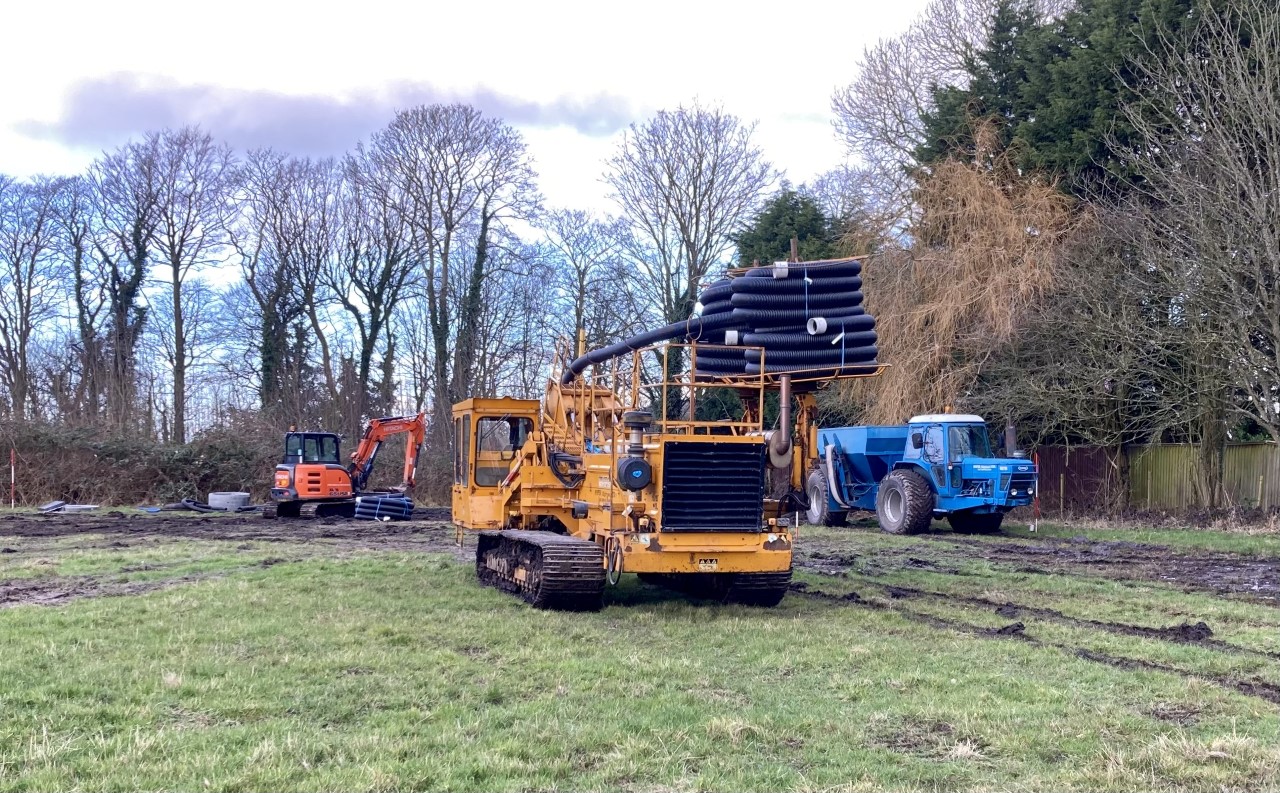 We were contacted by this client to investigate some drainage problems on a very wet grass paddock. We identified that there were tree roots blocking the main outlets to the field and have subsequently installed new 160mm carrier drains and re-connected all existing land drains into the new system. This week we will be using our drain jetter to clean the original drains which have accumulated a large build up of silt.